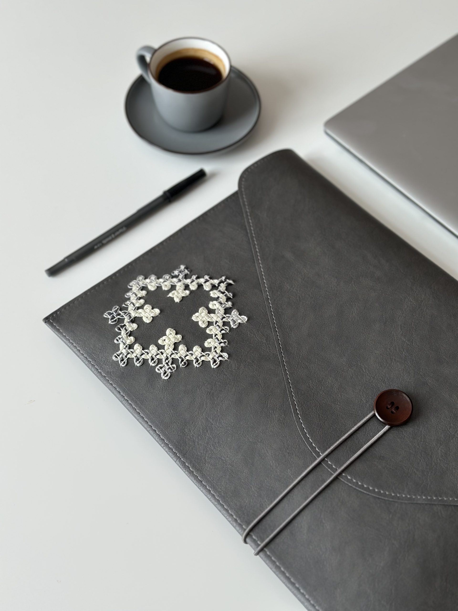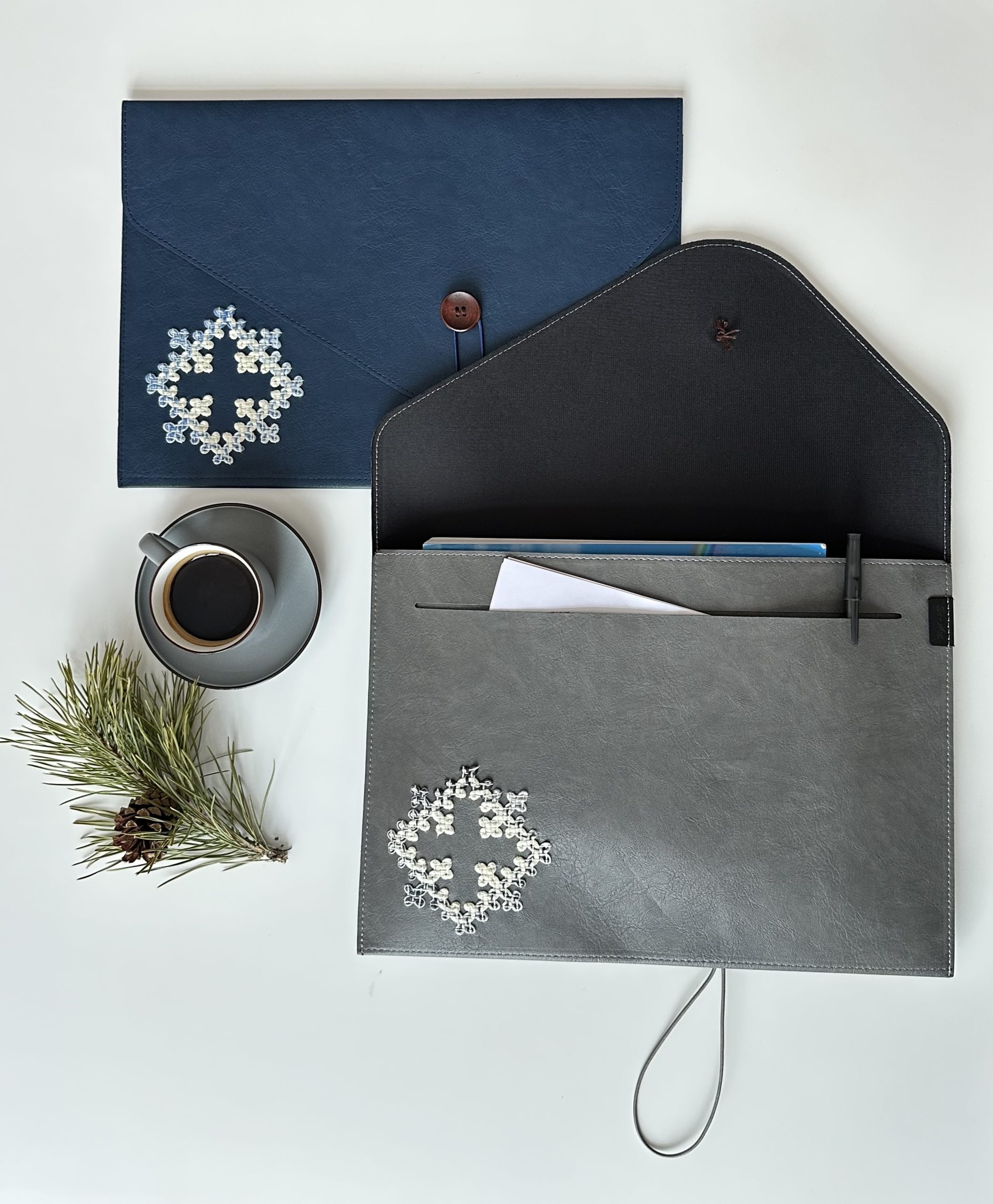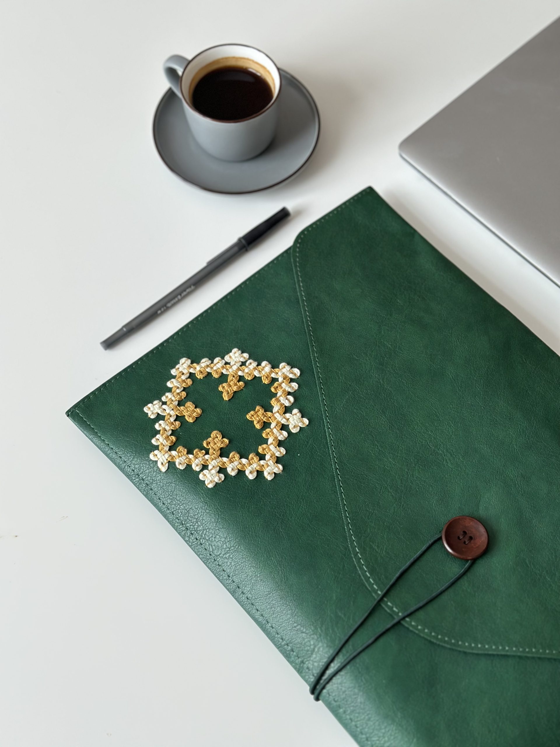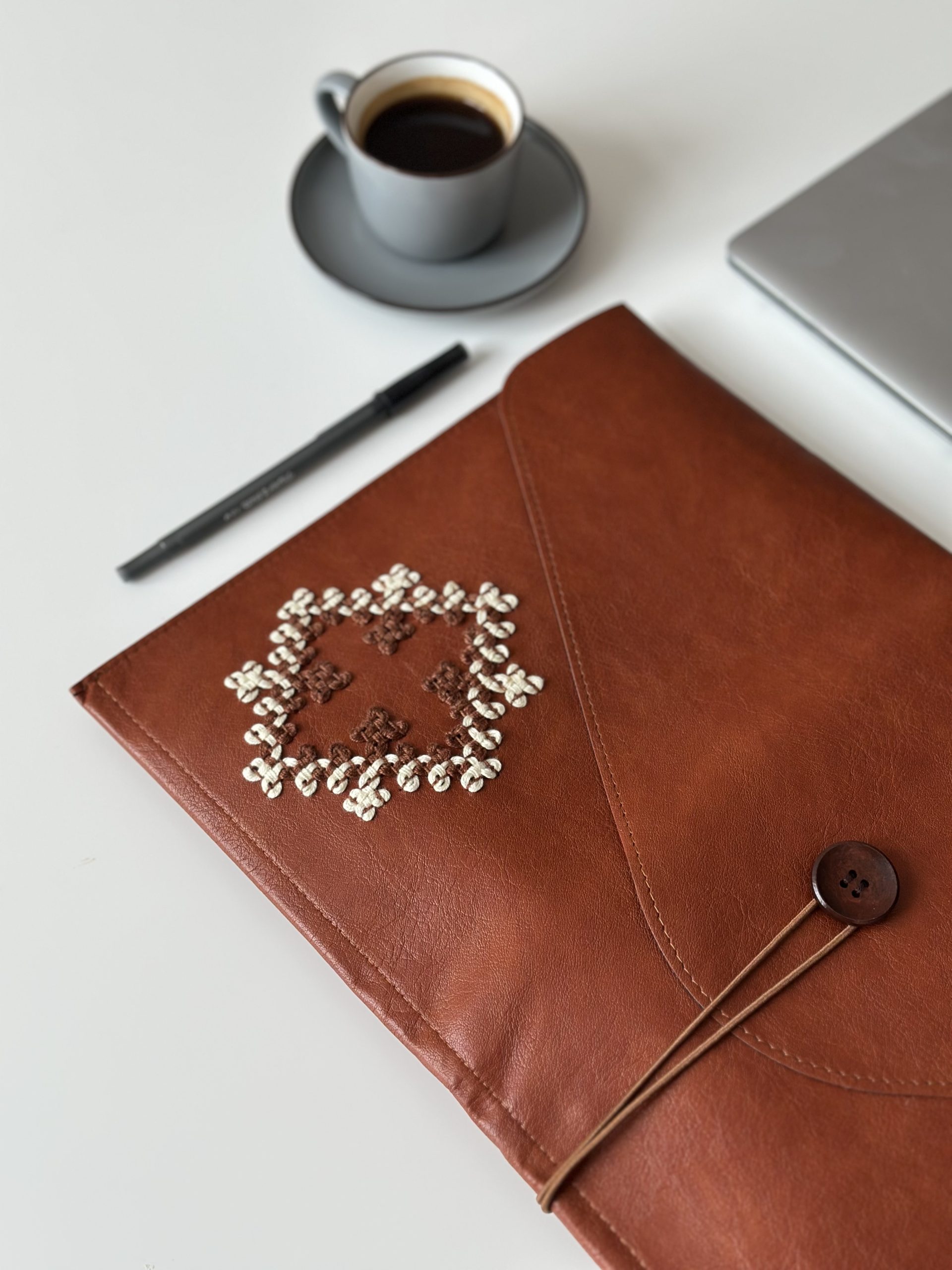 Multipurpose business bag embellished with a hand crafted Marash design.